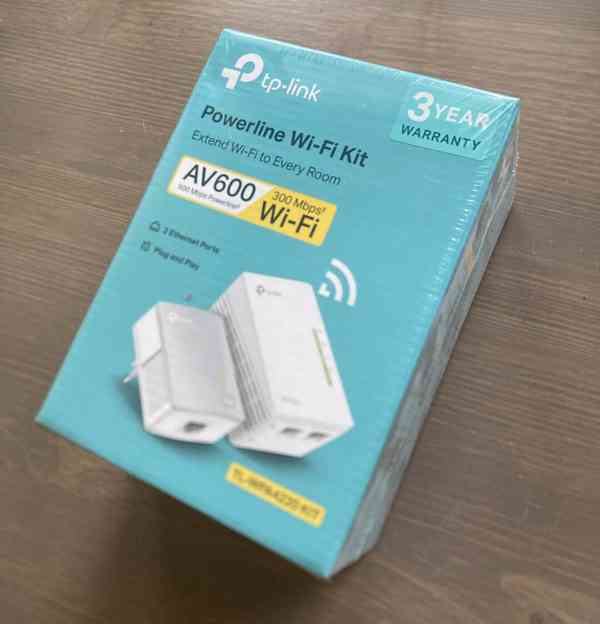 Prodám nový nerozbalený set tp-link AV600 Powerline Wi-Fi Kit, model TL-WPA4220 KIT, rok výroby 2023, síťový rozvod LAN po 240V (Ethernet over Power), datová propustnost 300 Mbit/s, dosah 300 m elektrické sítě, klonování Wi-Fi Standard HomePlug AV.